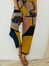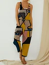 Abstract Art Illustration Print Button Strap Sleeveless Jumpsuit With Pocket