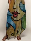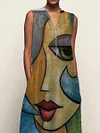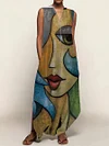 Art Print Zipper V-neck Sleeveless Maxi Dress