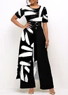 Black Pocket Brush Stroke Print Belted Jumpsuit