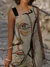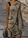 Casual Art Print Sleeveless Midi Dress Womens