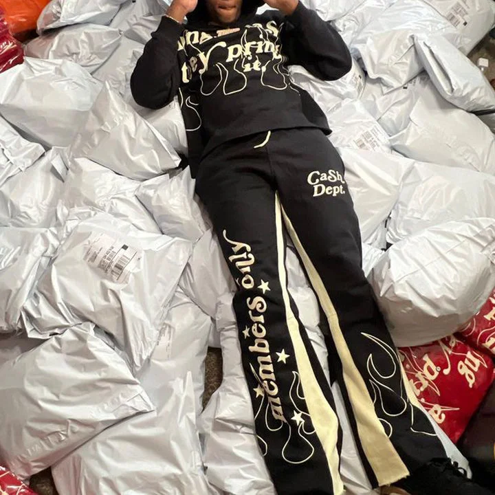 Casual Street Panel Sweatpants Hoodie Two-Piece Set