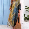 Casual V-neck 3/4 Sleeve Printed Dress
