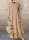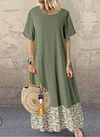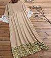 Cotton and Linen Crew Neck Patchwork Vintage Print Dress