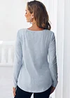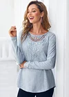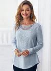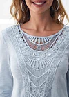 Dusty Blue Long Sleeve Lace Stitching T Shirt