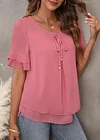Dusty Pink Tie Front Layered Ruffle Hem T Shirt