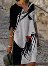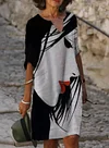 Fashion Art Colorblock Print V-neck Midi Dress