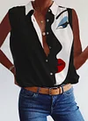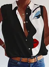 Fashion Art Print Button-up Sleeveless Blouse