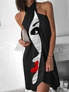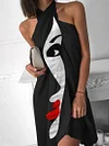 Fashion Art Print Halter Neck Midi Dress