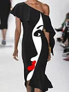 Fashion Art Print Off-shoulder Maxi Dress