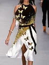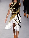 Fashion Colorblock Butterfly Print Off Shoulder Midi Dress
