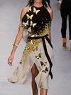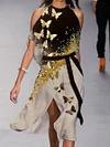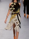 Fashion Colorblock Butterfly Print Off Shoulder Midi Dress