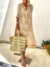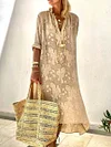 Fashion Floral Print Button V-neck Maxi Dress