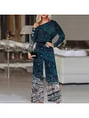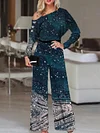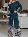Fashion Art Sequin Print Off-shoulder Long Sleeve Jumpsuit Women