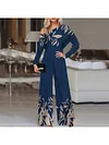 Fashion Leaf Print Off-shoulder Long Sleeve Jumpsuit Women