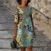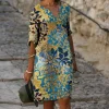 Fashion V-neck short-sleeved leaf print dress