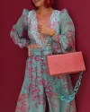 Floral Print V-neck Long Sleeve Jumpsuit