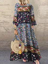 Floral Printed Stitching Long Dress