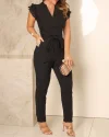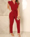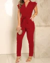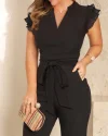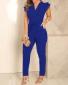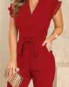 Flutter Sleeve Pocket Design Jumpsuit With Belt