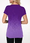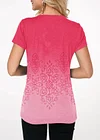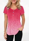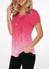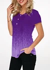 Gradient Crinkle Chest Button Detail Printed T Shirt