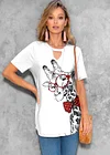 Keyhole Neckline Animal Prints Short Sleeve T Shirt