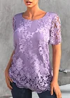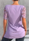 Lace Embroidered Light Purple 3/4 Sleeve T Shirt