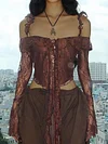 Unique Design: The blouse incorporates a perspective lace design, adding a fascinating and vintage touch to your outfit. The off shoulder style adds a sexy allure, while the playful fungus hem brings a sweet charm.