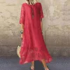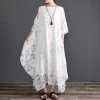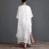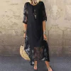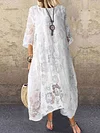 Features:Ladies Lace Crochet 3/4 Sleeve Lining Loose Asymmetric Hem Side Pockets Dress.