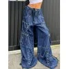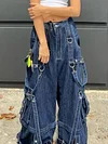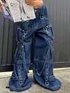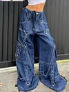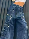 Description: Spice up some punk'd coolgirl-vibe cargo jeans to your denim collection, these cotton denims have metal strap design through the leg, features rivets embellished, a tie fasten on the waist and functional pockets detail, ended with a metal zip button fasten to the front.