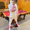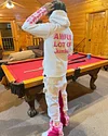 Pink love casual street patchwork trousers and hoodie pure cotton two-piece suit