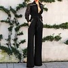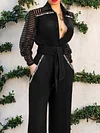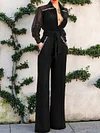 Sequin Trim And Stripe Mesh Black Color Button-up And Pocket Jumpsuit