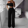 Sexy Bare Back Sloping Shoulder Sleeveless Pure Colour Jumpsuit
