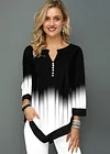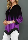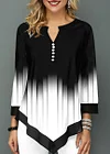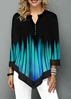 Split Neck Button Detail Asymmetric Hem T Shirt