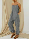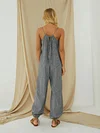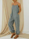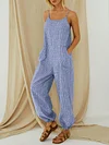 Striped Adjustable Shoulder Strap Loose Jumpsuit With Pocket