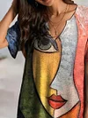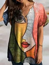 V-neck Printed Loose Casual Short-sleeved T-shirt