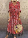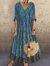 Product NameVintage Casual 3/4 Sleeve V Neck Dress