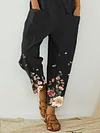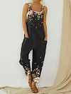 Vintage Floral Print Straps Casual Jumpsuit With Pockets For Women
