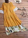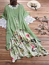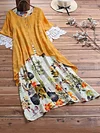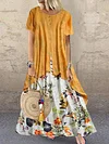 Women Short Sleeve Round Neck Tiered Floral Print Long Dress