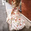 Womens Bohemian Classic Floral Patterns Vacation Dress