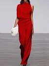 Women's Commuting Asymmetry Sleeve Pure Colour Jumpsuit