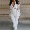 Women's Sexy V-neck Lace Long-sleeved Slim Jumpsuit