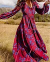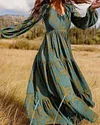 Women's Vintage Plant Printed V-neck Lantern Sleeve Maxi Dress S-3XL
